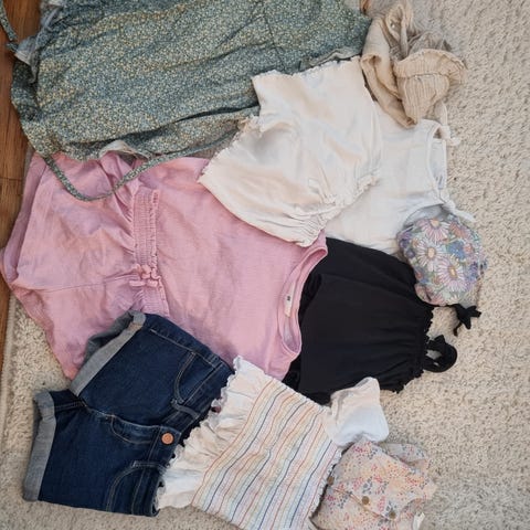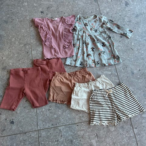 Klespakke med 10 plagg til jente i størrelse 98 og 104, se hvert enkelt bilde for størrelse. Alt selges samlet