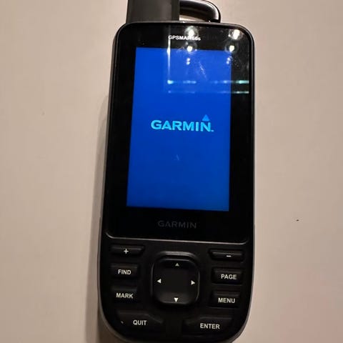 Garmin astro 320 GPS-enhet med fargeskjerm og ekstern antenne. Enheten er beregnet for utendørs navigasjon og har flere funksjoner for posisjonssporing og kartvisning.