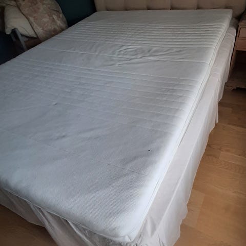 Selger en elegant og solid IKEA TYSSEDAL dobbeltseng (160x200 cm) i klassisk hvit farge. Sengen er pent brukt, stabil og i meget god stand – ingen knirk, ingen skader.