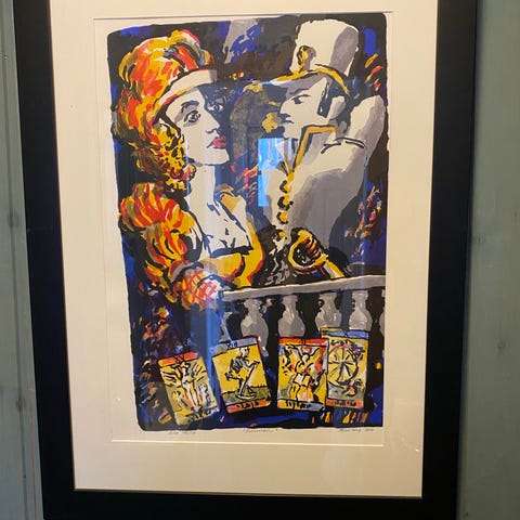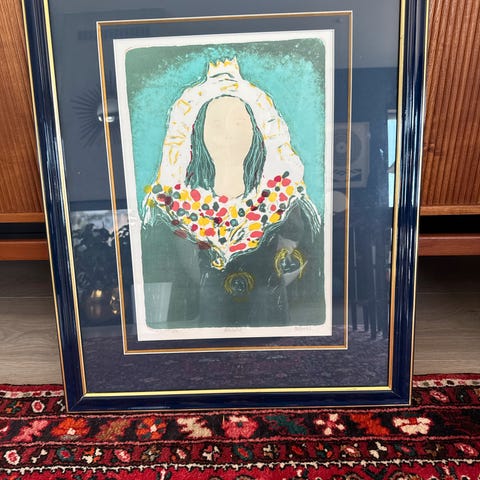 Stemningsfullt litografi av Ole Hauki. Pent innrammet med dobbelt passepartout. Rammemål 48x64 cm. Selges rimelig.