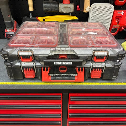 Diverse oppbevaringsbokser for utstyr og verktøy til salgs.