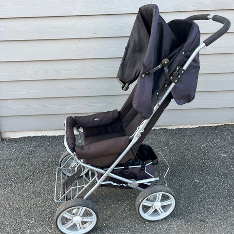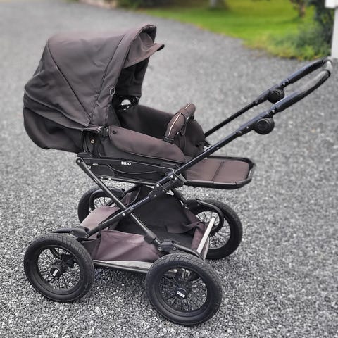 Pent brukt babydel til brio vogn. Mørkeblå. Liten madrass oppi.