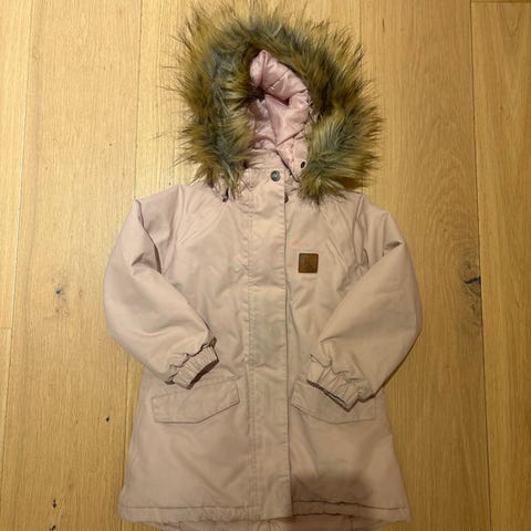 Selges ettersom den har blitt for liten. Brukt 1 sesong. Avtagbar hette. Tjukk og varm jakke. Normale bruksmerker, men veldig fin stand.