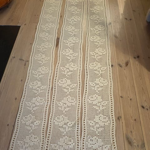 Håndheklet gardinkappe i fargen offwhite - Ca. 203x55 cm