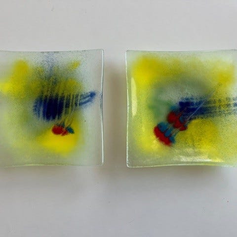 Nydelig blått askebeger, tungt, med kontrollerte bobler selges.