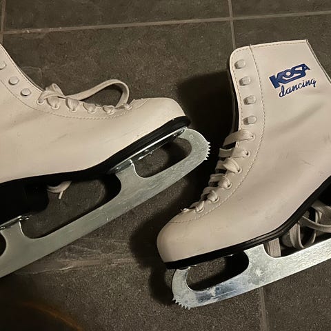 Kosa Dancing skøyter i størrelse 39. Skøytene er hvite og designet for generell skøyting.