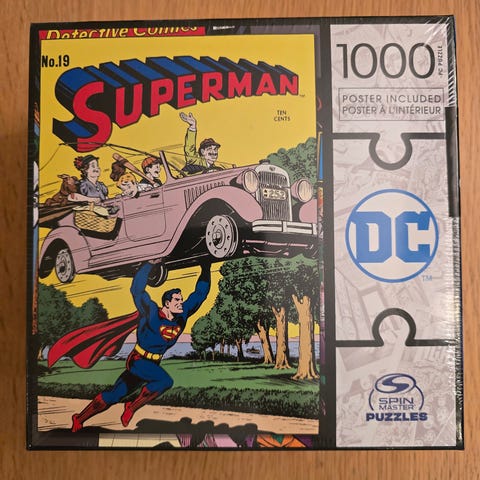 Batman Panorama puslespill med 1000 biter. Puslespillet har Batman-tema og panoramaformat. Kjøpt i London for ett par år siden, og det er uåpnet.