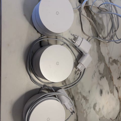 Fullt mesh-nettverk fra Google. Hver node er identisk og har porter for fysisk nettverkstilkobling, én av dem kobles til modem/nettverk. Enkelt oppsett i Google Home-appen, fungerer kjempebra til å utvide WiFi-dekning. Strømforsyning til hver node følger med.