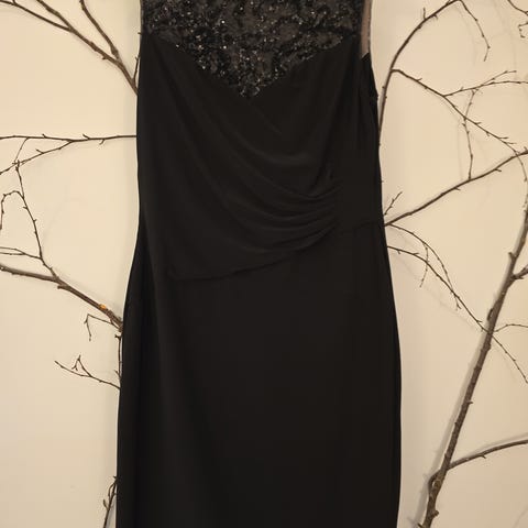 Ralph Lauren festkjole i størrelse 6 som jeg opplever som medium. Kjolen er brukt 2 ganger av meg. Tettsitende med flaterende rynking i midjen.