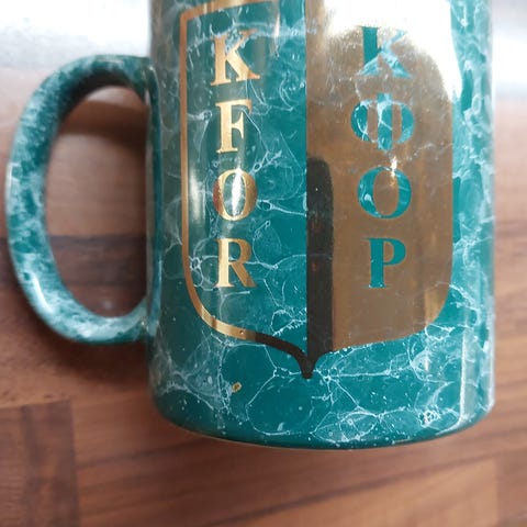 Krus svart/grått. Made in China. Helt men noe slitt forgylling, særlig øverst på kanten