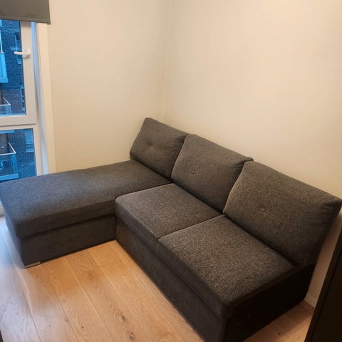 Nytt separat armlene til Jysk Vejlby sovesofa (vi ødela det ene og fikk to nye armlener)
