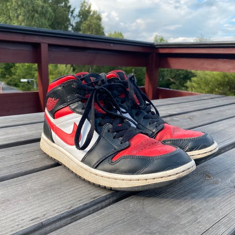 Hei, selger et par Jordan 1 mid, til en rimelig pris siden de ikke passer meg lenger. Kjøpt for 1400kr. De er pent brukt og det er ingen synlige bruksmerker. Det er veldig fine sko som passer til mye. De er helt normale i størrelsen. Har fortsatt skoesken.