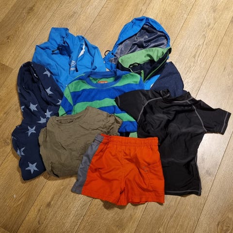 2 gensere og 3 stilongser i ull selges for 100kr samlet. To av stillongsene er slitt på knær, men hele i det innerste laget. Tøyet er i 120 g 130, passer fint fra 5-6 års alderen.