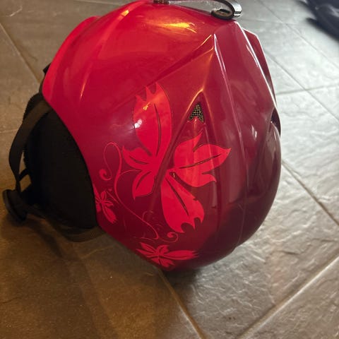 Slalomhjelm for barn str 50-54 selges. Er godt brukt, har mange små riper. Ikke skadet ellers.