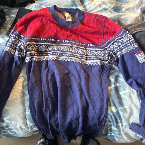 Pent brukt. Lite hull helt nederst på siden. Marius Crewneck er en myk og varm ulltrøye med det ikoniske Marius®-mønsteret, et av Norges mest kjente strikkedesign. Trøya er laget av 100 % merinoull og er jacquard-strikket. Den klassiske crewneck-passformen gjør genseren allsidig og behagelig å bruke alene eller som et varmt mellomlag. Med en tykkelse på 220 g/m² gir den optimal isolasjon, fukttransport og temperaturregulering, slik at du holder deg varm og tørr selv under krevende værforhold. Perfekt til skituren, fjellturen eller hverdags på kalde dager. Tradisjonelt norsk design kombinert med funksjonelle egenskaper.