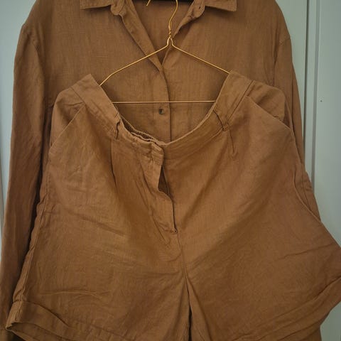 Som ny, minus litt krøllete. Liten i størrelse XL. Legges ut som L. Ubetydelig brukt. Noemal lengde. Splitt på arm og strikk i håndledd.
