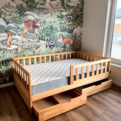 Gammel uttrekkbar barneseng med to madrasser. Gies bort!