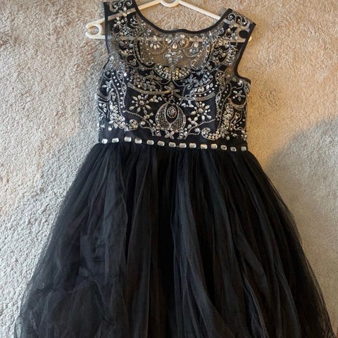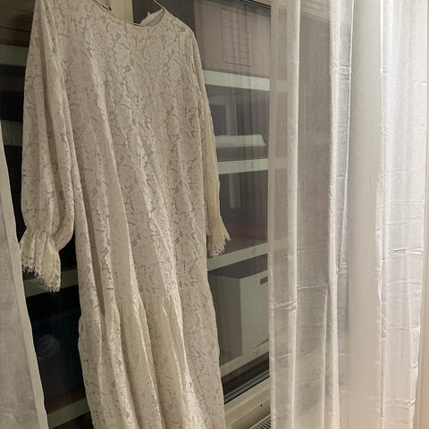 Fin kjole brukt 2ggr. Trenger ny glidelås ellers en fin kjole. Størrelse 12 (M)