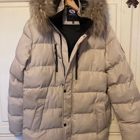 Canada Goose vinterjakke i størrelse M for menn. Jakken er blå og laget av polyester. Egnet for utendørs bruk i kalde værforhold.