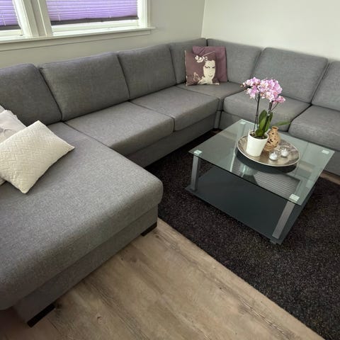Veldig fin blågrå hjørnesofa selges da jeg skal flytte. Mål: L: 241x281 B: 86