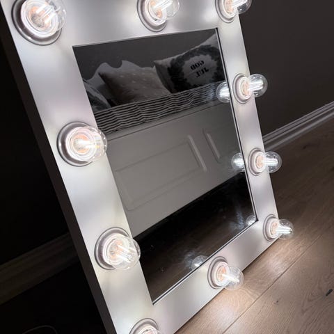 Speil og lys rundt speil til salgs. Pærene er nesten ikke brukt og har lang levetid igjen.