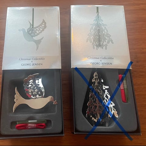 Holliday ornament. «Made of brass plated with 21 carat white gold». I original emballasje✨