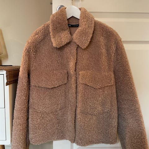 Jakke fra Zara i størrelse M. Jakken har en kort modell med knappelukking og lommer foran. Egnet for kvinner.