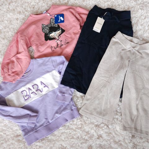 Kjempemasse pent tøy i str 110/116!!!Holder på å selge ut masse klær etter tvillingene. (Har dobbelt av flere av klærne, hvis noen ønsker å kjøpe dobbelt. Har solgt noe av det allerede) Noe av tøyet er brukt i barnehage, så kan inneholder små hull eller flekker. Her er det mye pent tøy.