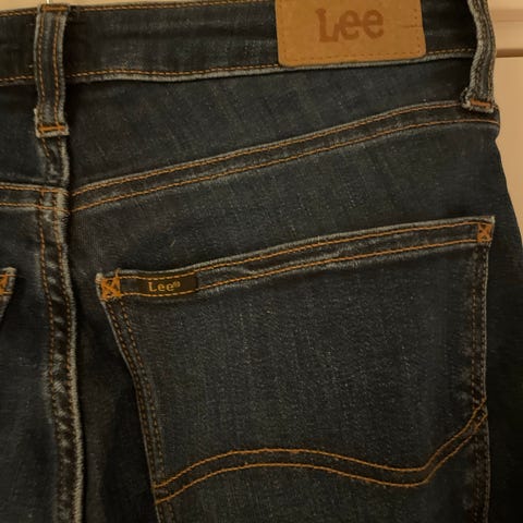 Lee Denim jeans i blå farge, størrelse S med midjevidde W27 og L31 sleng bukser som heter breese.