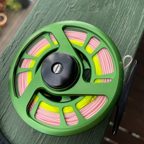 Fluesnelle komplett vektklasse 7/9. Rigget med venstre sveiv. (kan enkelt bygges om til høyre) Rigget med 30 mtr backing, orange - Wf 7 flyt flueline, grønn og tappert klar fortom. Klar til bruk. Det følger også med blå oppbevaring/transport pose. (Har også tilsvarende løsning for WF5 med snelle 5/7 til en lavere pris)