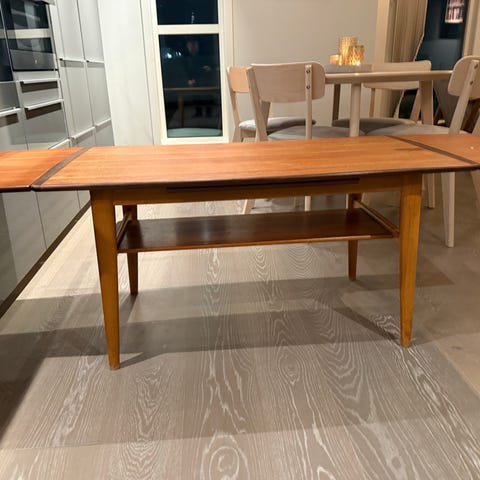 Selger unna et salongbord i glass, med mørk brun søyle og krom, bordet er nokså godt brukt, men det fungerer helt fint og det er likevel nokså pent. Lite hakk i glasset med naturlige riper i glasset, men synes ikke så godt. Må evt hentes her.