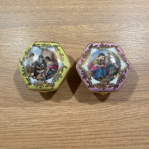 Et raffinert smykkeskrin med klassisk fransk uttrykk, inspirert av tidløst håndverk og delikate detaljer. Perfekt for oppbevaring av smykker og andre små skatter. Str: 9x7x4cm.