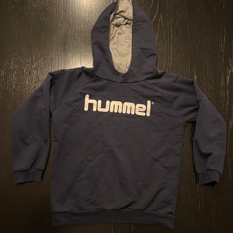 Hummel genser og bukse i str. 128 selges. Buksen er noe slitt på knærne, men ikke hull.