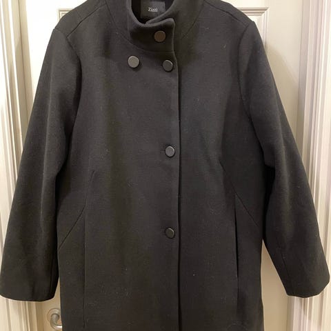 Jakke/kåpe fra Zizzi i str L (tilsvarer 50/52). Den har glidelås og knappelukking, gode lommer og stretch i hendene. Den er kjøpt for et par år siden men så og si ikke brukt. Ny pris var rundt 1200kr men selges for 400kr + frakt på 130kr. Sendes som Norgespakke med Posten. Kan også hentes på Klepp.