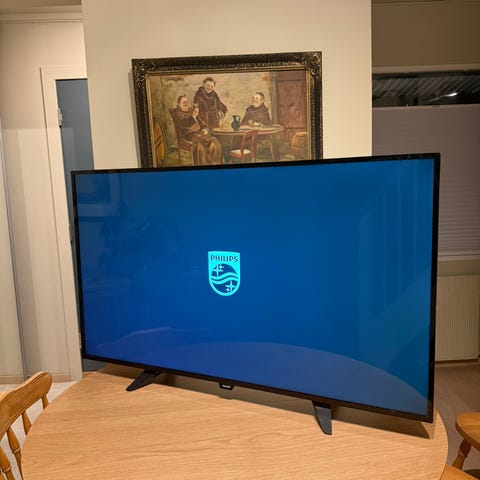 TV kjøpt i 2014, ubrukt siste fem år. En liten overfladisk ripe øverst på skjermen, men har ikke betydning når TVn er påskrudd og er vanskelig å spotte ellers (avbildet på siste bilde).
