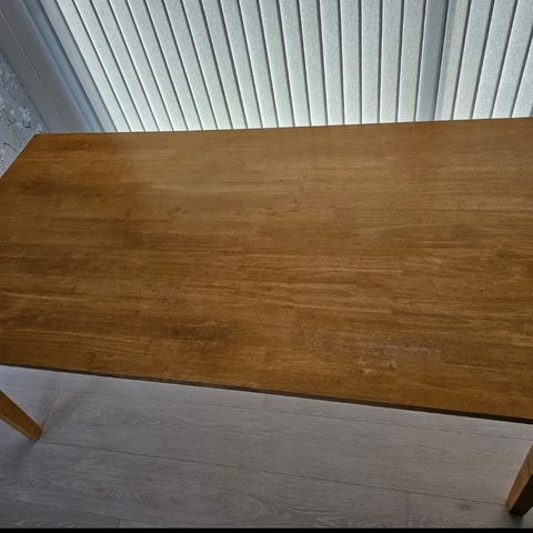 Pent spisebord i heltre med 6 stk stoler selges samlet.