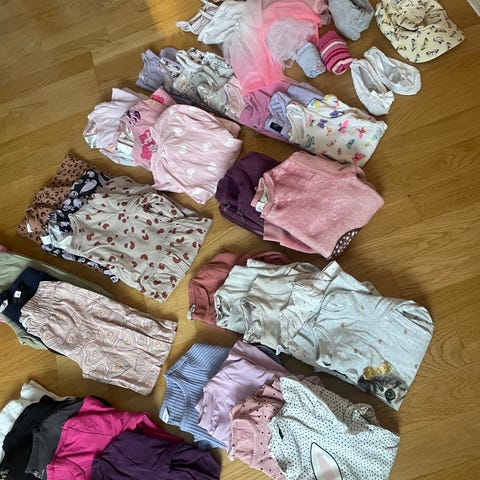 Bukser, gensere, t-skjorter, kjoler, ull og pysj.