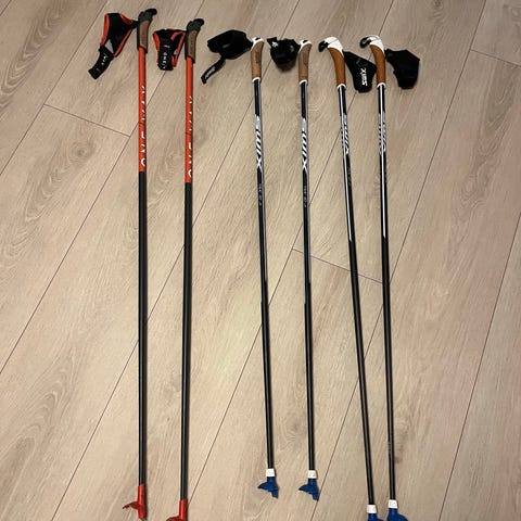 Lette og stødige staver, egnet for både klassisk og skøyting. Kork håndtak og justerbar racingstropp med borrelås. Pent brukt og i god stand, riper/bruksspor kan forekomme.