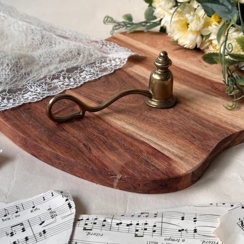 Elegant lyseslukker i messing med et nydelig design. Perfekt til å slukke lys på en trygg og stilfull måte, samtidig som den er en dekorativ gjenstand å ha fremme. Se bilder for mål. 💫