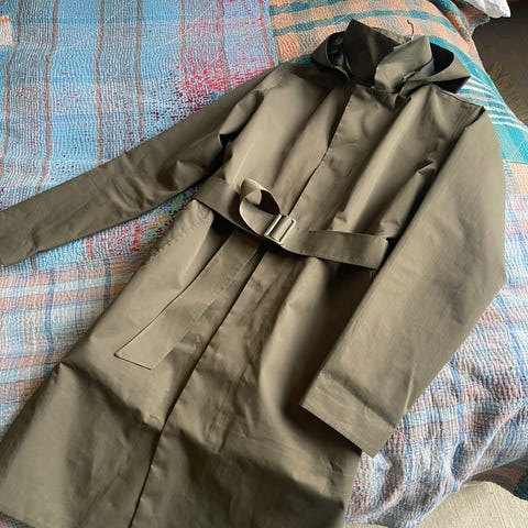 Isolde trenchcoat som er vanntett og kan brukes som regnjakke.Selges under halv pris