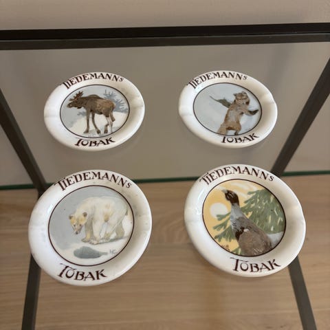 Porsgrunn, Tiedemanns Tobak Porselens Askebeger med Ekornmotiv