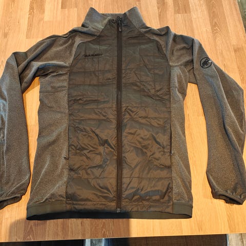 Perfekt alpintjakke med tynn foring. Den har snølås, mange lommer og tørkle for å pusse brilleglass, lommer for lufting på sidene, hette etc,