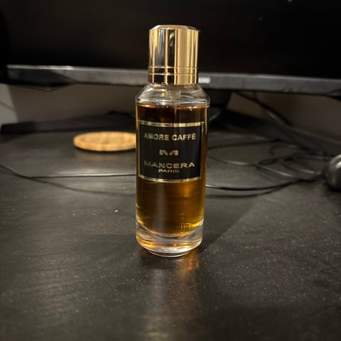 Mancera Aoud Cafe Eau de Parfum 60 ml unisex. Parfymen har noter av svart solbær, bergamott og fersken i toppnoter, kaffe, amber og florale noter i mellomnoter, og base av musk, amber og powdery elementer. Flakongen er laget av glass med magnetisk kork og kommer med beskyttende pose og original eske.