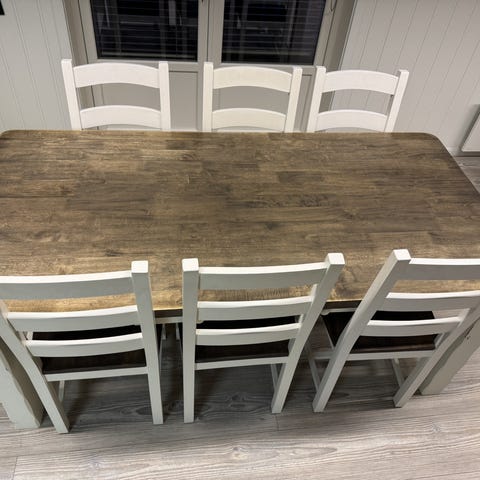 Pent brukt rundt bord og 5 stoler