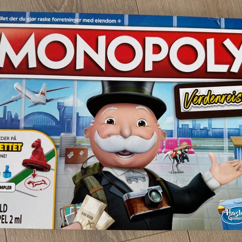 Hasbro Monopoly Arcade Pac-Man brettspill med arkade-tema. Spillet inkluderer brett, spillebrikker formet som Pac-Man og spøkelser, terning, elektronisk arkademaskin og instruksjoner. Produktet kombinerer klassisk Monopol med elementer fra Pac-Man arkadespill.