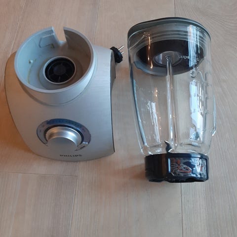 OBH Nordica smoothie blender gies bort. Flaskene og lokket med knivblader er borte men blenderen fungerer som den skal