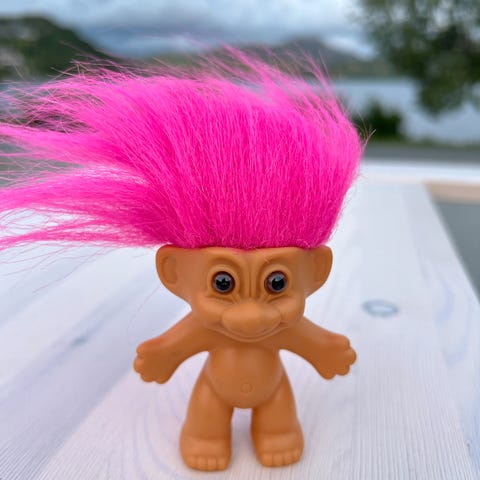 **Den rosa klesdukken har en defekt. Hodet hennes er brukket, men kan ikke sees utenfra.
