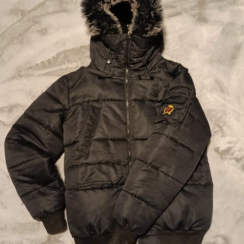 Dope vinterjakke i størrelse XS, flerfarget. Jakken er designet for utendørs bruk i vinterforhold og har hette.