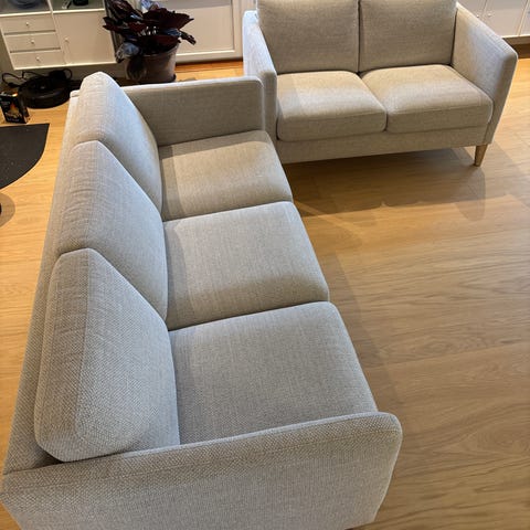 Selger denne nydelige sofaen, da jeg skal flytte og denne ikke passer inn i det nye hjemmet.