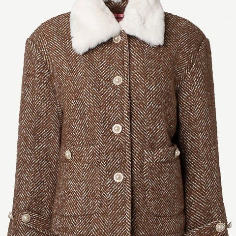 Herta Jacket fra Custommade i nydelig brunfarge med krystallknapper og avtagbar "pels" krage. Trendy og kul jakke i ullblanding, så den er også varm. Avslappet passform, hoftelengde. Lommer foran. Helforet. Bildene er lånt og modellen er 175 cm og har på seg størrelse XS. Den som selges er str 38 - normal i str. Laget av 49% Ull 24% Polyester 27% Akryl.